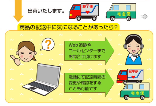 商品の確認ができたものから、発送準備とともに、発送通知メールをお送りします。